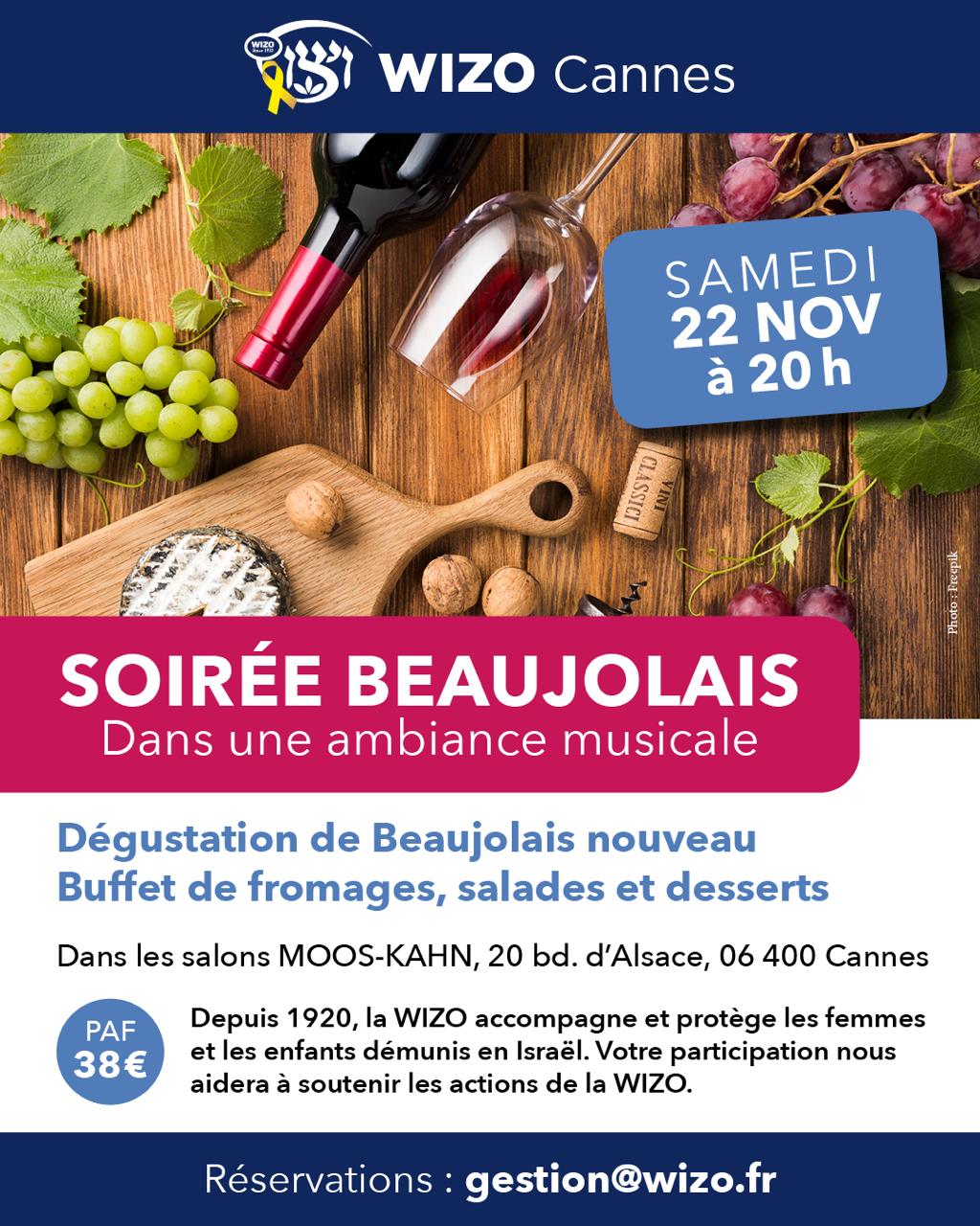 WIZO Cannes vous propose une dégustation de beaujolais dans un ambiance musicale